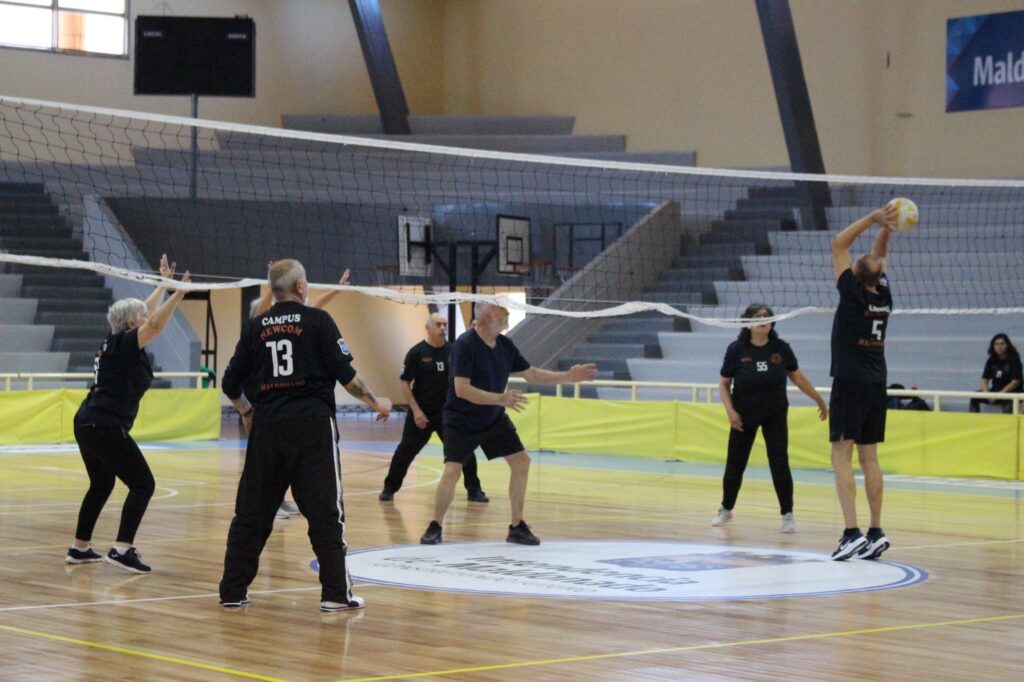 Este deporte consiste en un tipo de voleibol adaptado para personas mayores, donde la pelota se atrapa y se lanza por arriba de la red con el objetivo de no dejar caer el balón al suelo.